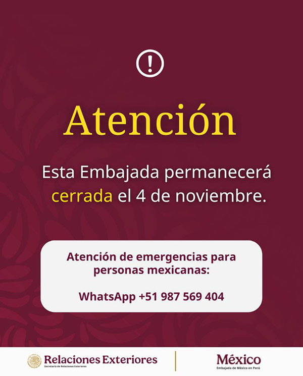 EMBAJADA DE MÉXICO EN PERÚ CERRÓ SU ATENCIÓN HOY